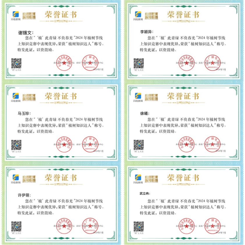 本次线上知识竞赛内容涵盖生态知识、环保常识、政策规定等多个方面,旨在弘扬绿色环保理念,增强公众的环保意识和科学素养。本次活动社会参与人数共计约9万人。我院13位教师和若干位同学积极参与学习和答题,获得了“植树知识达人”称号和荣誉证书。