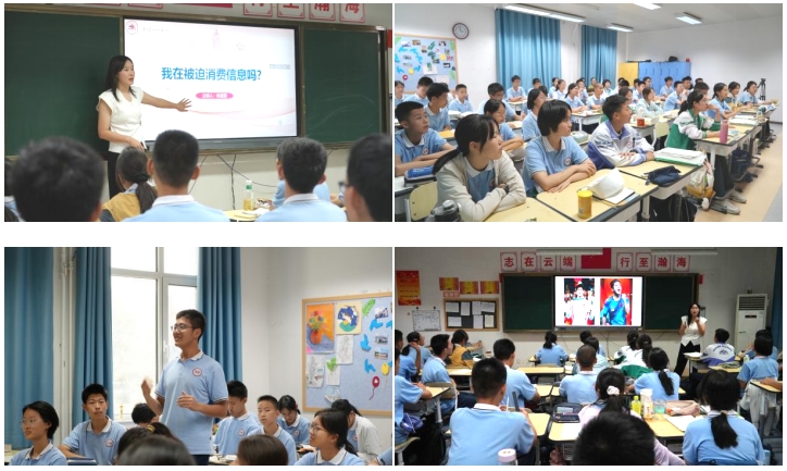林昱君老师针对青少年的现实困境,与同学们讨论“我在被迫消费信息吗?”这一话题,引起了附中同学们的广泛共鸣。林老师聚焦同学们在日常生活中时常忽略却又切实存在的问题,从“‘标题党’三要素”“媒介系统依赖”“信息茧房效应”“如何避免被迫消费信息?”四个方面深入浅出地进行讲解,并结合学生们平时经历的真实场景,引导其反思自身的信息消费行为。学生们表示,通过此次互动与讨论,提升了自我辨别被迫信息消费的能力,培养了正确的信息消费观念。