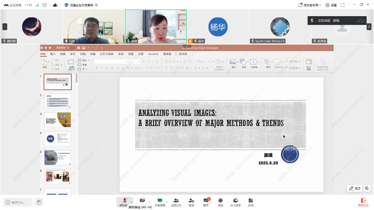 6月20日,澳门科技大学人文艺术学院教授、助理院长,博士生导师孙瑱应邀为威廉williamhill师生作题为“Analyzing visual images: a brief overview of major methods and trends”的线上专题讲座,威廉williamhill副教授冯强主持。