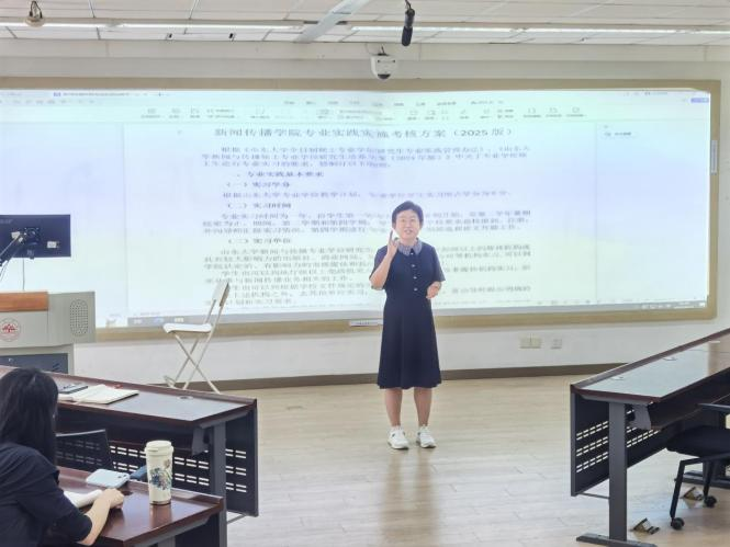 首先,倪万对研究生同学进行了实习安全、知识产权和工作保密等方面的教育,并借此提出四点期望和要求。一是讲平安,牢记安全第一理念,确保人身安全;二是讲政治,坚持正确舆论导向,深入了解中国新闻事业发展现状;三是讲纪律,遵守学校和实习单位的各项规章制度,严守纪律底线;四是讲成效,推动协同创新,培育更多标志性成果。在实习的同时,与导师做好学业沟通,进行毕业成果选题,为中期考核和开题做准备。