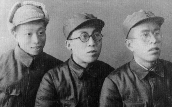 1945年冬,摄于安东市(今丹东市)。右为陈楚同志,左为姜丕之同志,中为刘敬之同志
