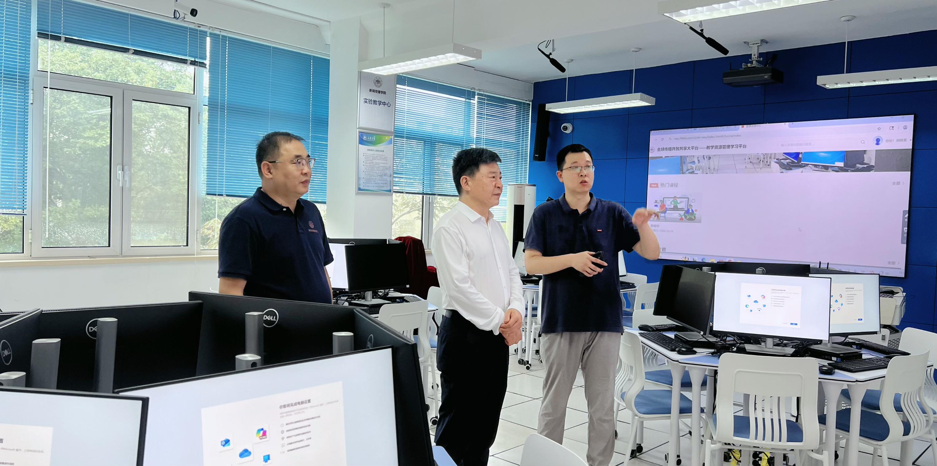 实验室实地考察过程中,朱德建与实验教学中心教师深入交流,对2023年成功获批“山东省普通高等学校实验教学示范中心”给予高度评价。朱德建察看实验空间布局,详细询问各类设备的配置情况,深入了解实验室在支撑教学、服务科研等方面建设成效。他指出,实验室作为学校人才培养、科学研究和社会服务的重要平台,其建设水平直接关系到学校的整体办学质量与核心竞争力,必须高度重视、持续发力。针对新闻传播学科特点,他强调,新闻传播实验室建设要始终坚持以立德树人为根本核心,紧跟行业技术前沿趋势,将实验室更新换代作为核心任务之一,确保仪器设备配置既具备前瞻性对标国际前沿,又能满足实际教学科研需求,更好实现省级实验教学示范中心的辐射引领作用,为培养高素质新闻传播人才提供坚实保障。