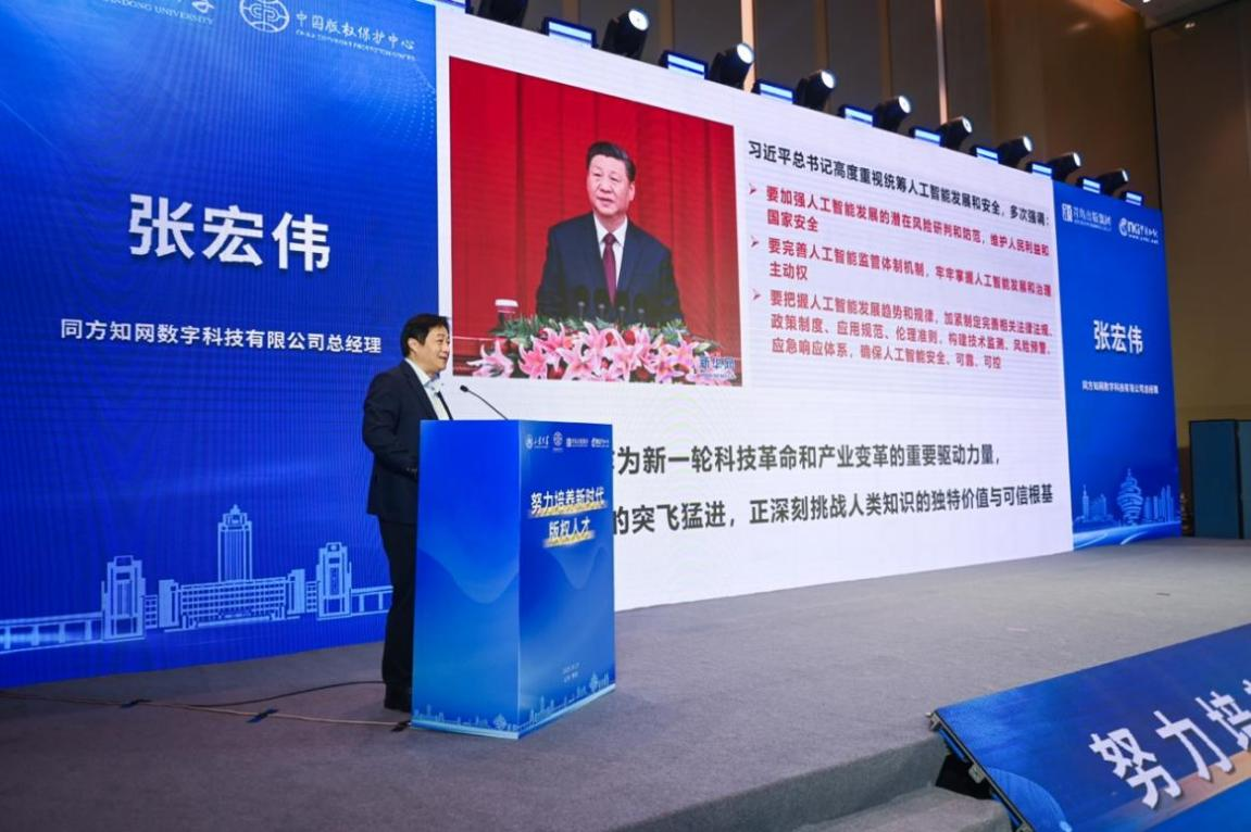 在专题演讲环节,学习强国学习平台有限责任公司法务部主任张凤杰以数智时代版权文化建设与相关人才培养为题,强调版权文化是产业发展的根基,人才培养应注重文化认同与制度理解。