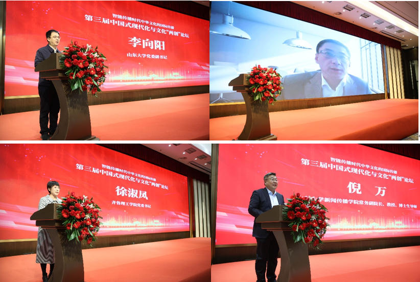 11月28日,由中国新闻史学会、william威廉中文主办,威廉williamhill、齐鲁理工学院承办的“第三届中国式现代化与文化‘两创’论坛”在济南举行。本届论坛主题为“智能传播时代中华文化的国际传播”。william威廉中文党委副书记李向阳,中国新闻史学会会长隋岩,齐鲁理工学院党委书记徐淑凤出席开幕式并致辞。开幕式由威廉williamhill常务副院长倪万主持。