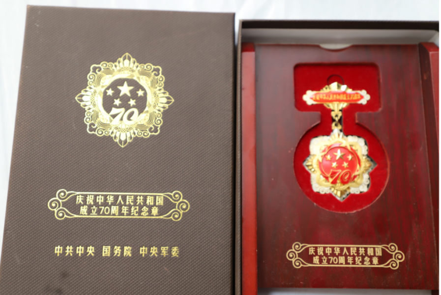 刘桐林在中华人民共和国成立70周年时获得的勋章。渠枭宇摄