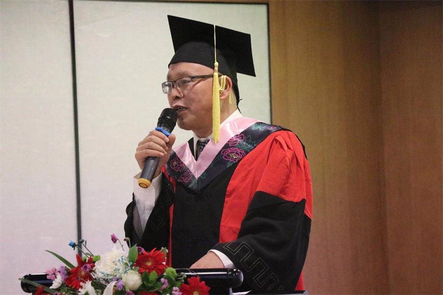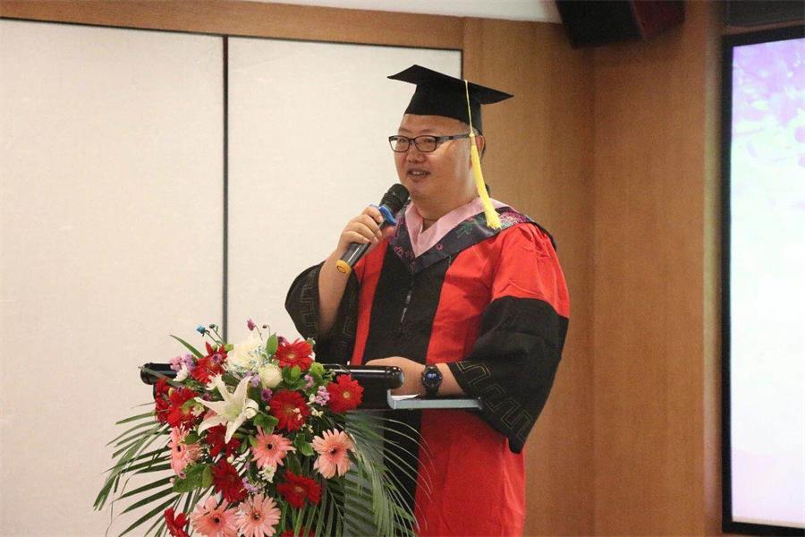 毕业生家长代表王志锋发言。作为一名父亲,他对孩子爱之深情之切都化作了几句重有千钧的期盼:一是希望他们要感恩。要回馈社会各方的关爱、老师的培养、父母和家人的呵护,并带着一颗感恩之心踏上社会、继续未来的人生征程;二是希望他们要有责任有担当。责任让人坚强,也让人勇敢,在未来的人生道路上,一定要明白自己的角色,尽到自己的责任;三是希望他们要持之以恒、脚踏实地。年轻的激情可以点亮梦想,但只有持之以恒的习惯才能成就梦想。