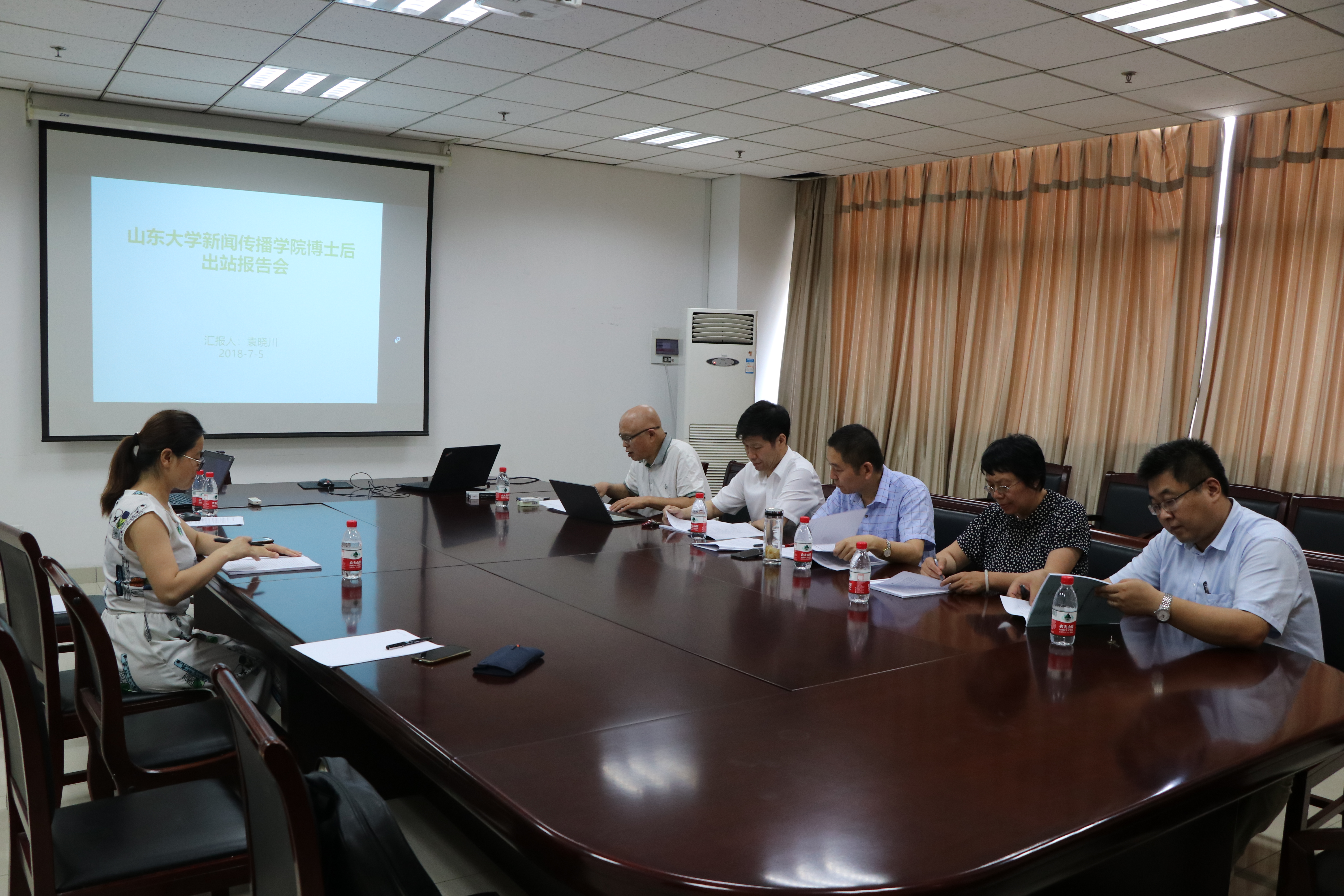 报告会伊始,合作导师刘明洋教授介绍了袁晓川博士后在站期间取得的科研成果,充分肯定了其认真进取的工作态度。随后,袁晓川以《大数据背景下的政务新媒体传播研究》为题作出站报告,从选题意义、研究设计、创新点和不足几个方面进行了详细的汇报。报告梳理了政务新媒体发展演变、探讨政务新媒体在舆情回应和组织传播的机制、效果,对政务新媒体传播的未来发展提出相应建议。