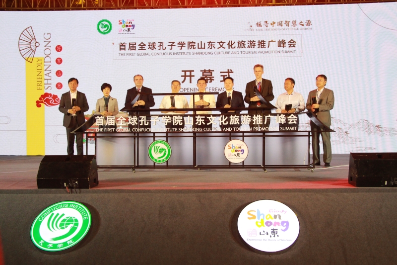 8月14日,由国家汉办和山东省旅游发展委员会共同举办的首届全球孔子学院山东文化旅游推广峰会在曲阜市香格里拉酒店开幕。