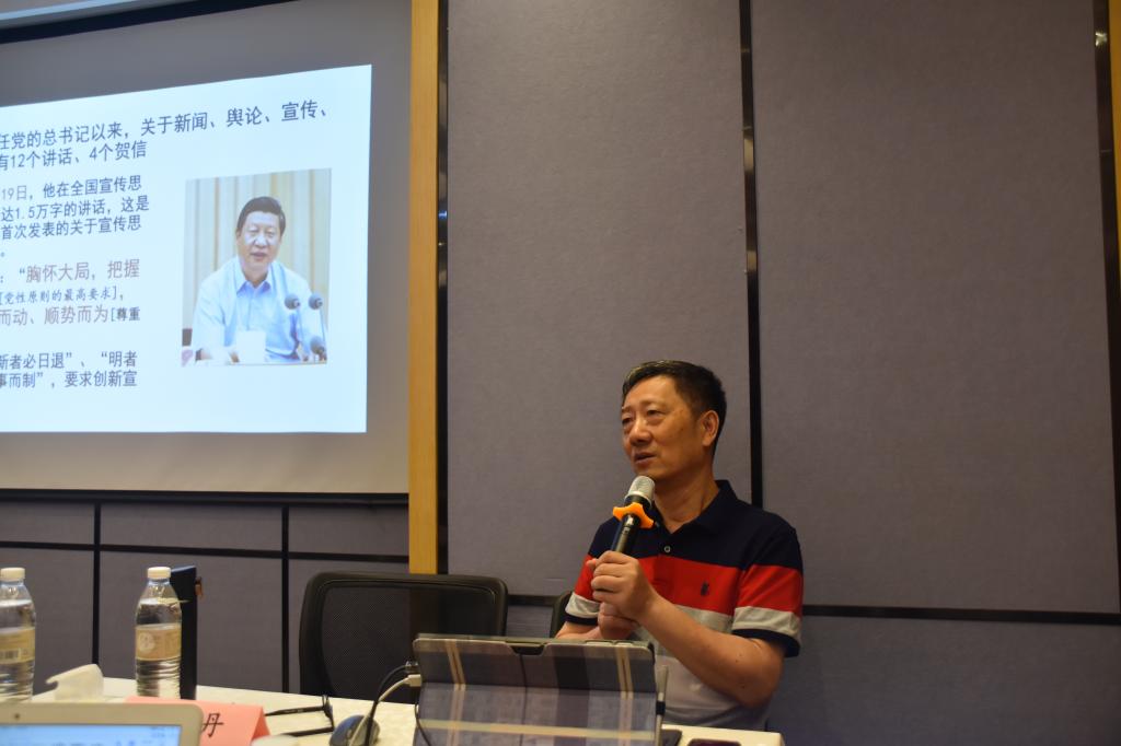 27日上午,陈力丹教授以“习近平的宣传观和新闻观”为主题讲解了“互联网+”形势下的宣传舆论工作。首先,陈力丹引用党的十九大报告中涉及新闻传播的论述,为大家解读了相关论述的深刻含义。他认为,马克思主义新闻观的两个要点就是坚持党性原则、尊重新闻传播规律,因此研究马克思主义新闻观必须要读经典原著。陈力丹教授解读了习近平担任总书记以来关于新闻、舆论、宣传、网络工作的12个讲话、4个贺信。他说,做新闻要做到胸怀大局,坚持政治家办报、办刊、办新闻网站,以大量生动的案例说明要有政治意识、法治意识,要以党的系列文件为依据判断事实的性质、把及时主动学习党的文件和主要领导人讲话看作职业工作的一部分。陈力丹教授梳理了党性和人民性关系的认识历史,并对习近平总书记强调的党性与人民性相一致原则进行分析,认为宣传工作应当遵循新闻规律,坚持以人民为中心的工作导向,反对形式主义。陈力丹教授还分别讲解了马克思、恩格斯、列宁的新闻思想,提出当前加强马克思主义新闻观教育的重要性和途径。