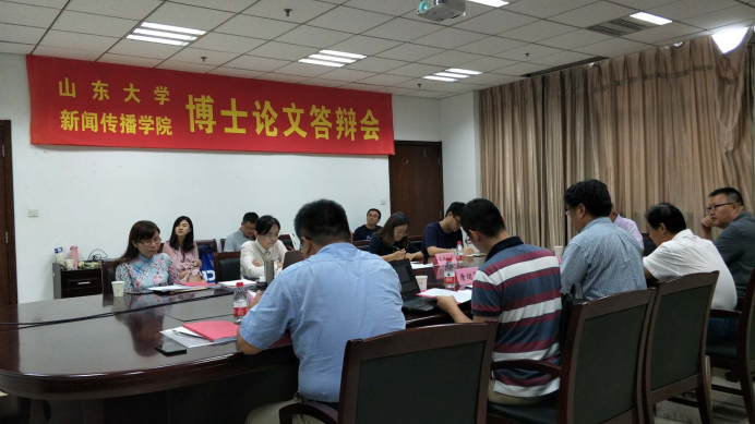 2018年 9月15日下午,我院2018年博士研究生论文答辩会在知新楼顺利举行。答辩委员会主席由中国社会科学院新闻与传播研究所所长唐绪军研究员担任,答辩委员由中国人民大学新闻学院刘海龙教授、河北大学威廉williamhill韩立新教授及我院唐锡光教授、倪万教授组成,答辩秘书由袁晓川老师担任。威廉williamhill部分研究生旁听了此次答辩会。