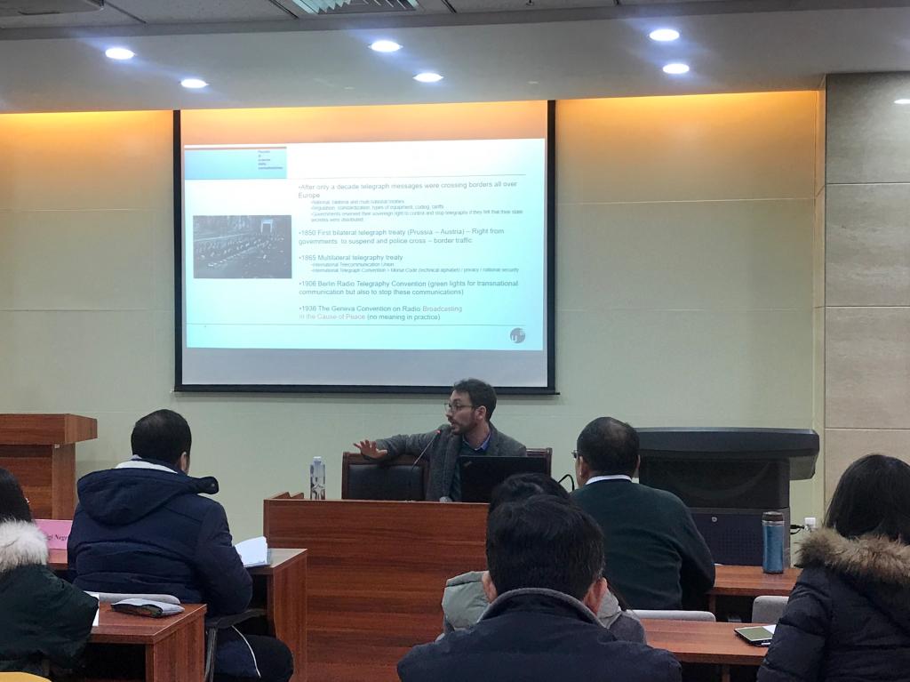 随后Gianluigi Negro博士对互联网治理模式进行了讲解。互联网治理(Internet Governance)是政府、私营部门和民间社会根据各自的作用制定和实施旨在规范互联网发展和使用的共同原则、准则、规则、决策程序和方案。互联网治理的方式主要包括网络基础设施及网络架构管理,互联网应用及内容管制等。Gianluigi Negro博士以ICANN和WSIS为例对互联网治理的不同阶段进行了具体分析,他认为尽管WSIS致力于建设一个以人为本、具有包容性和面向发展的信息社会,但其本身也是一个折中的产物,WSIS在很大程度上是对以美国为代表的ICANN的牵制和制约。