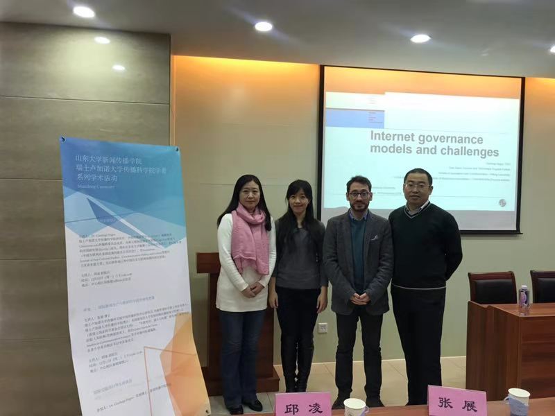 12月10日下午,瑞士卢加诺大学传播科学院研究员Gianluigi Negro博士做客威廉williamhill,为大家带来了题为“互联网治理模式与挑战”(Internet governance models and challenges)的学术讲座。讲座由我院副院长邱凌主持,瑞士卢加诺大学传播科学院中国传媒研究中心研究员张展博士、威海校区文化传播学院副院长张文祥、我院副教授杨晓冬参加了此次讲座。