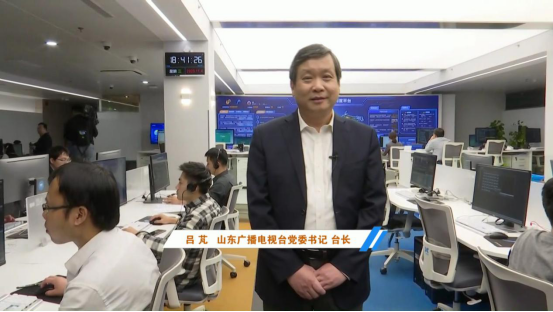 直播从融媒体中心的中心办公区域拉开序幕,吕芃院长边走边讲,一镜到底,详细介绍了闪电云融媒体指挥调动平台的构成,并实时采访多位正在工作状态中的一线新闻人,多角度剖析目前山东广电融媒体中心的建设情况以及三级(省、市、区县)媒体融合联动的现状。在一线新闻人参与互动讲述的环节中,山东广播电视台融媒体资讯中心时事新闻部副主任崔真真从策、采、编、审、发、评六个角度介绍了闪电云系统所提供的全生命周期融媒体指挥调动中心;山东广播电视台数据舆情中心主任谭鲁民通过介绍快讯、页面、审核、评论、媒拓、互动评论审核以及网络专题聚合编辑等岗位,浓缩解读了新媒体发布运营的流程;山东广播电视台融媒体资讯中心副主任张倩在现场展示了融媒体演播室全方位、立体化的大屏包装系统、便捷实时的虚拟植入系统以及自动集约化的拍摄系统;德州市广播电视台副总编辑左靖则通过远程连线,以具体的数据、翔实的案例为我们展现了“全省一盘棋,共享一朵云”的三级联动宣传一体化新格局。