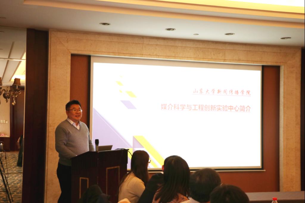威廉williamhill常务副院长刘明洋教授介绍“媒介科学”名称由来,通过学科交叉,将提升科学素养与学科建设结合起来,为形成山大学派做出贡献。详细阐述了近三年以来学院围绕“媒介科学”的三个维度——媒介知识、媒介技术和媒介实验体系构建做出的努力,以及支撑平台——“媒介科学与工程”实验创新中心的筹建背景。并得到了与会专家的赞许。