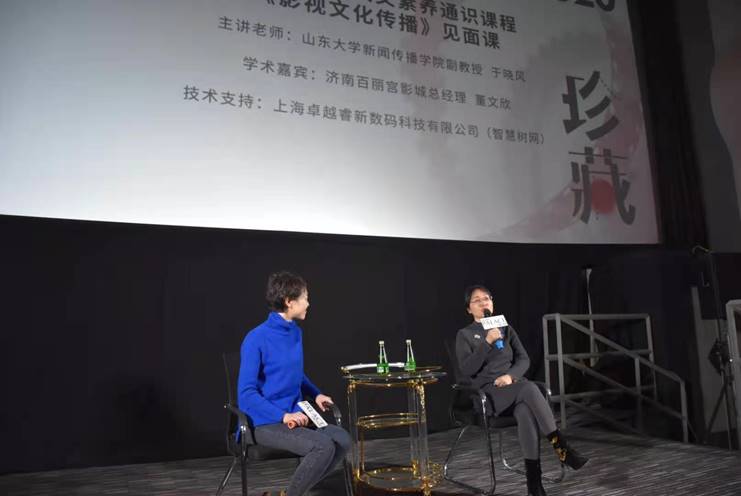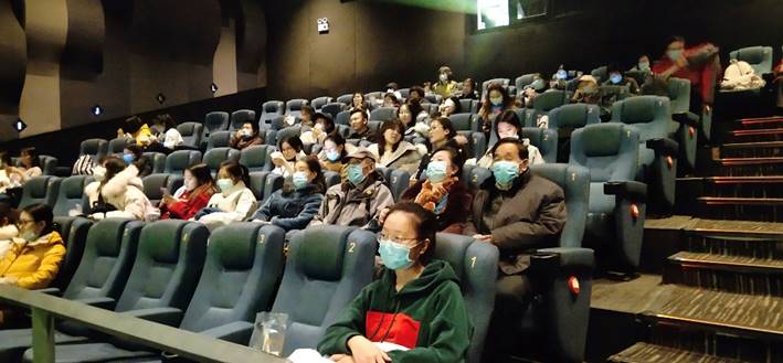 12月11日,我院于晓风副教授开设的本科生专业限选课“艺术传播”将课堂搬进济南百丽宫影城,借助“珍藏:中国经典影片展映”活动,开展深入现场的混合式教学。学院学生工作办公室主任、本科生辅导员许玉莲,团委负责人、研究生辅导员杨璐带领本科生党支部和2019、2020级硕士研究生党支部部分党员以及团员骨干一起观影,共同接受了一场生动深刻的爱国主义教育。