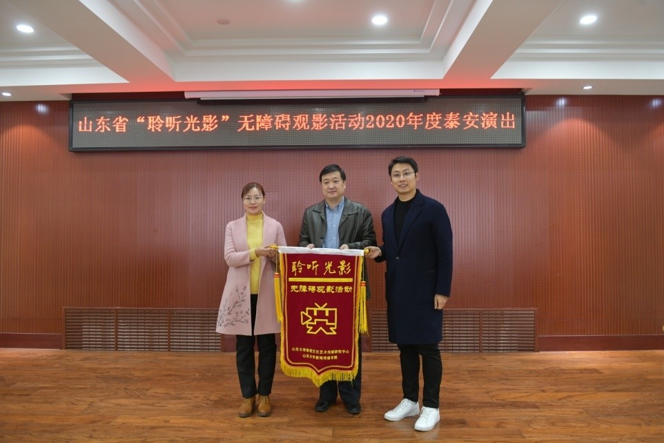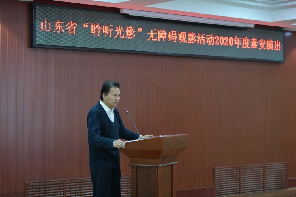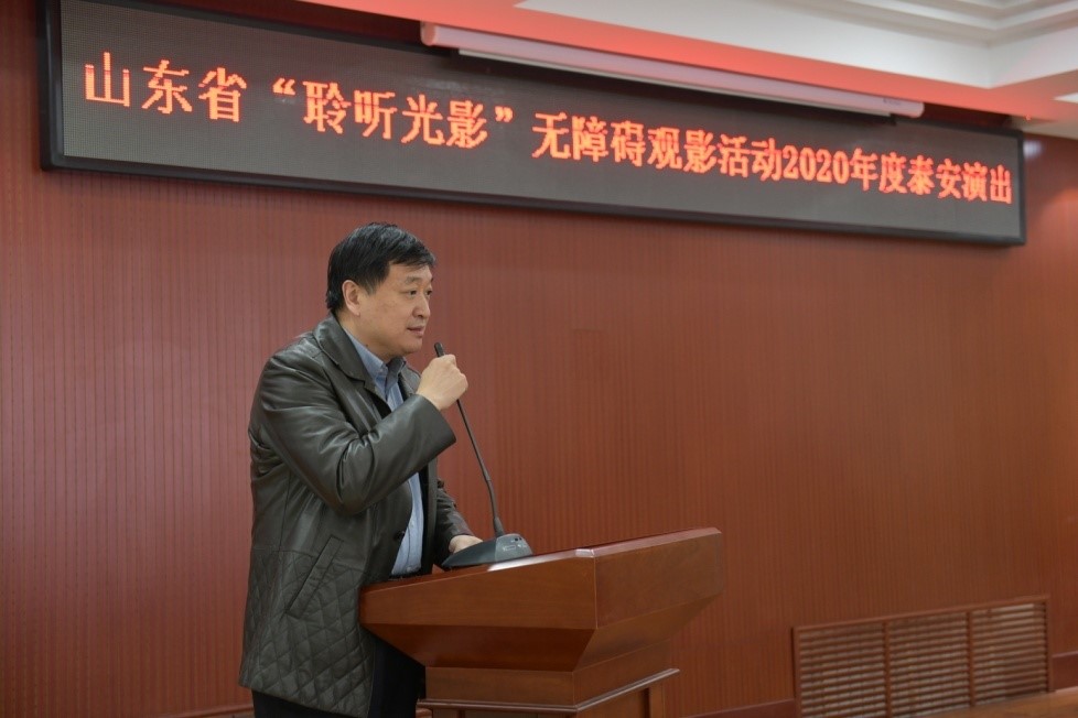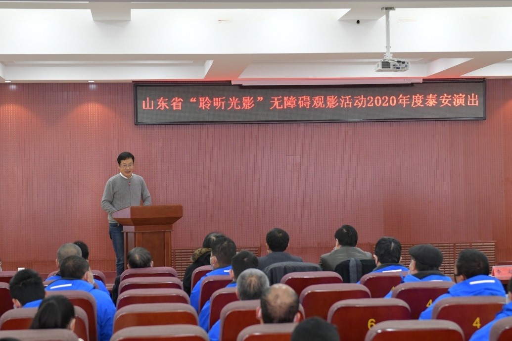 12月19日,山东省“聆听光影”无障碍观影活动2020年度泰安站演出在泰安市特殊教育中心顺利举行。山东省委宣传部电影处副处长李超,中国盲人协会副主席、山东省盲人协会主席汤建泉,威廉williamhill党委副书记王丽君,泰安市文化和旅游局四级调研员董焕芹,泰安市残疾人联合会四级调研员李广喜,泰安市电影公司总经理王东山等出席活动。