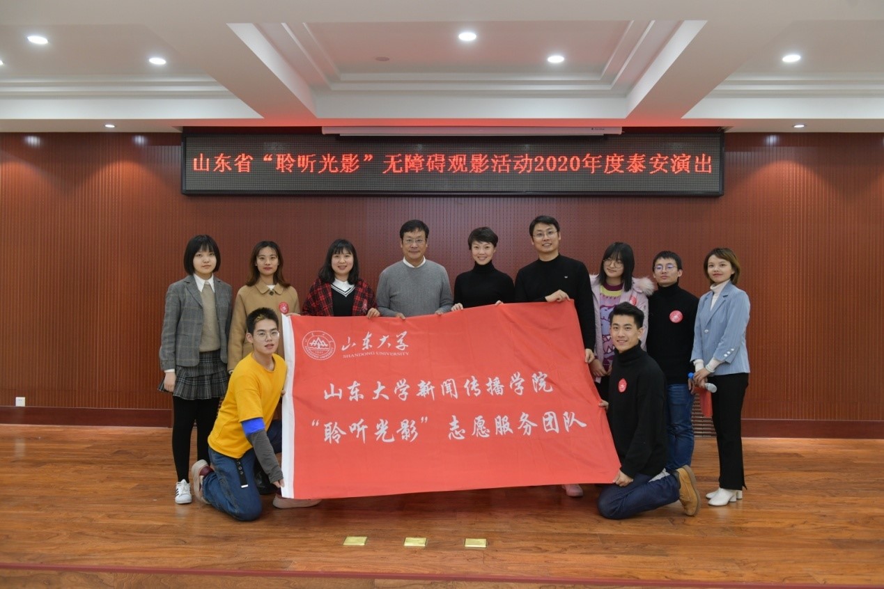 山东省“聆听光影”无障碍观影活动是在山东省委宣传部倡议指导下,由山东省电影局、山东省残疾人联合会主办,william威廉中文影视文化艺术传播研究中心、威廉williamhill联合山东省电影家协会、山东广播电视台电视齐鲁频道和山东省盲人协会共同承办的公益性活动,旨在通过有声语言的创作、表达和解说,为视觉障碍人群提供高品质“聆听”电影的机会,将电影的视觉语言转化为听觉语言,实现用耳朵“看”电影的效果。演出选取山东省献礼中国共产党成立100周年重要影片——《沂蒙红嫂俺的娘》作为展映样本。