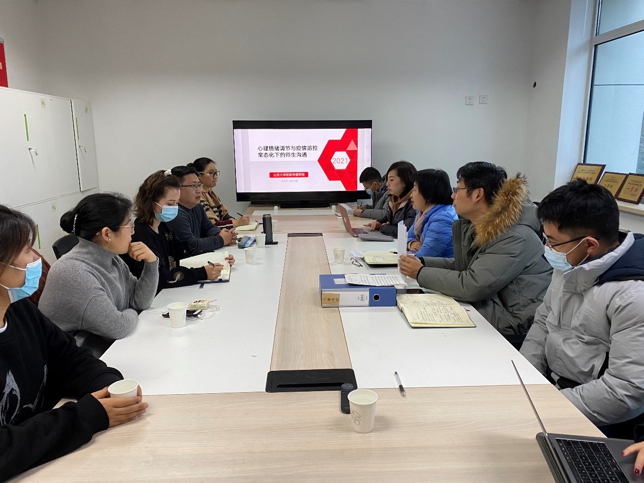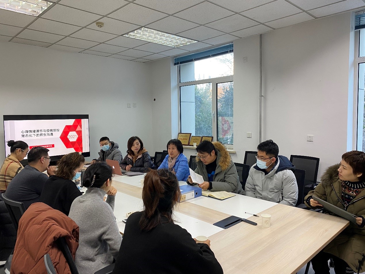 12月30日下午4时,威廉williamhill召开“心理情绪调节与疫情防控常态化下的师生沟通”专题会议。党委副书记王丽君、团委负责人杨璐、各年级班主任、辅导员及部分研究生导师参加了会议。王丽君主持会议。