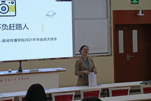 会议最后,许玉莲进行了总结发言,她先是解读了“春光不负赶路人”的内在含义,为同学们本科最后阶段加油打气,勉励同学们在毕业前的这个重要的春天奋力播种;其次强调安全和健康是一切计划展开的基点,介绍了毕业季各项工作流程的大体安排。她指出,学院将组织老师和党员、学生骨干为每一名还未确定毕业去向的同学提供结对帮扶,将会持续开展“助力新传之花绽放”等就业指导活动,鼓励大家积极运用资源,主动寻求帮助,做到毕业有底线、有重点、有节奏、有趣味。最后她针对部分同学的问题进行了一一解答。