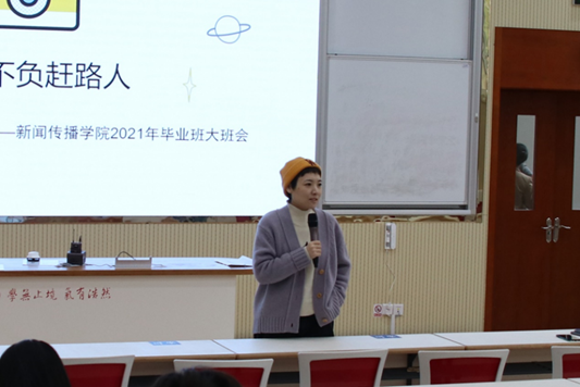 邱凌从专业实习课程、毕业论文流程安排和要求、考研复试注意事项、就业心态和方法四个方面进行了温馨指导。她敦促同学们以积极主动、认真的态度、跟进每一个毕业、就业的环节。她指出考研复试的同学要加强和老师的沟通交流,做好充足的准备,努力争取机会。准备就业的同学,要进一步调整就业心态,不盲目攀比,放长远眼光,建立合适期待,在不断尝试中提高自我,在实践实干中去找寻工作岗位。