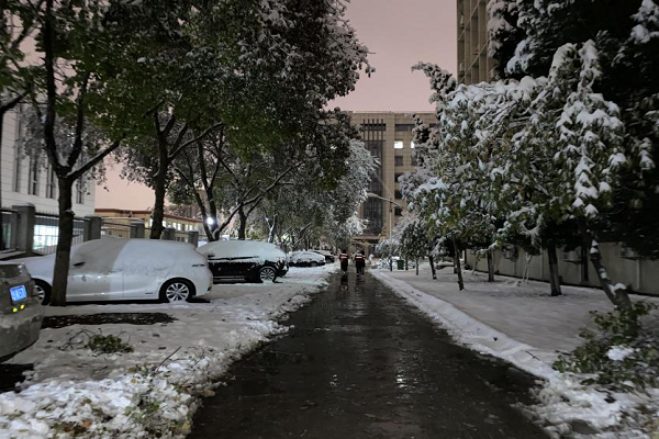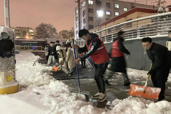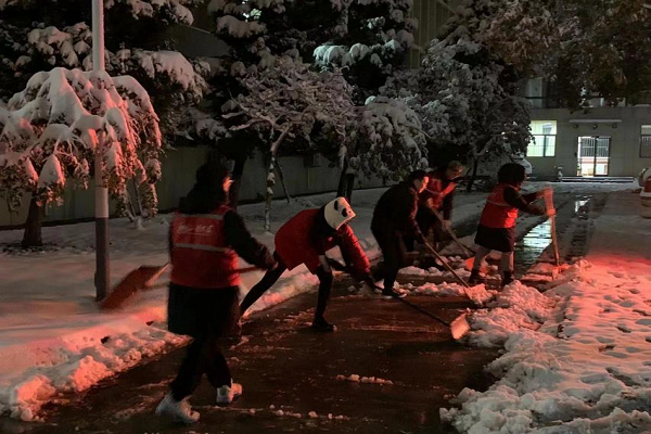 当天下午,学院团委向全体学生发出了号召和倡议,研究生党支部、本硕各年级团支部积极响应。同学们冒着严寒,在半小时内迅速集结起一支积雪清扫志愿服务队伍,扫雪工作得到了快速、高效地推进。
