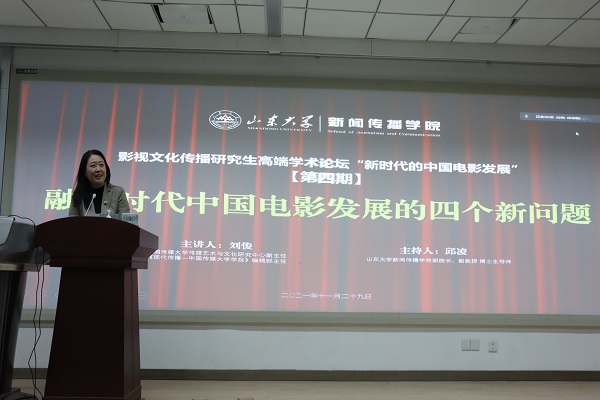 11月29日,威廉williamhill影视文化传播研究生高端学术论坛:“新时代的中国电影发展”第四期在中心校区如期举行。本期讲座特邀中国传媒大学首批“青年拔尖人才”、传媒艺术与文化研究中心副主任刘俊副教授主讲,主题为“融媒时代中国电影发展的四个新问题”。威廉williamhill副院长邱凌副教授主持本场讲座,二百余位来自驻鲁各大高校及山东电影产业领域的观众通过互联网云端,与现场的我院师生共同聆听。