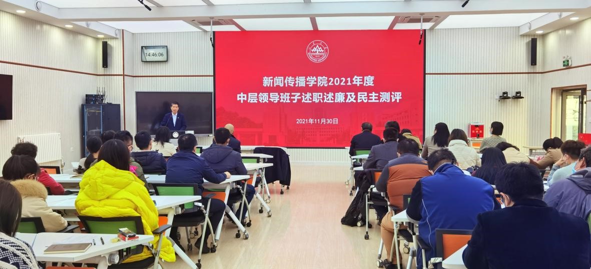 常务副院长刘明洋对学院整体工作、个人教学科研和思想政治等方面进行汇报,刘明洋表示自己积极为学院发展争取外部支持,积极谋划学院发展,在分管的科研工作、人才队伍建设等方面都有序完成目标任务。随后,倪万副院长对学院的研究生教育、继续教育及实验室建设情况进行汇报总结。本年度学院在智慧融媒体建设方面获得了校外合作机构资金、技术等方面的大力支持。院党委副书记王丽君从加强师生理论学习、畅通师生意见反馈渠道、做好协调组织及文化活动等方面进行工作汇报。截至目前毕业生就业率完成97.08%,“聆听光影”等志愿服务活动受到社会各界的广泛好评。邱凌副院长就兼任党支部书记工作进行述职述廉汇报。在完成常规的“三会一课”及党委部署的工作以外,在党史学习教育中积极开展多路径、多层次,常规学习加专业特色来开展工作。同时在分管本科教学工作中,调整系所设置,创新教学思路,进行人才培养的专业细分。组织员王智洁对自己全年工作进行总结,认真做好“两规范一创建”工作,努力使党务工作规范化,党员档案归档工作规范化,创建学习型、服务型党组织,全面提升党务工作的水平。
