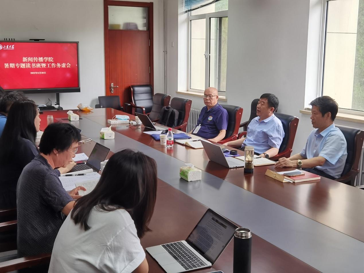 围绕理论学习和工作开展,桑晓旻传达了学校领导班子暑期专题读书班的有关精神。他强调要认真抓好学习,强化理论武装,通过学习推动学院的各项事业发展,将“精耕细作”的要求落实到工作实处。一是要紧扣立德树人的根本任务,形成全员育人的合力,既要注重学生的综合培养,更要关注学生的个性化培育,做到因材施教。二是要延续学院发展的良好势头,创新各项工作,特别是在推动新文科建设中,发挥新闻传播的专业优势,在舆论引导方面拓展研究的广度和深度。三是要做好安全稳定工作,强化意识形态和安全巡视的整改工作,确保各项事业稳步发展。