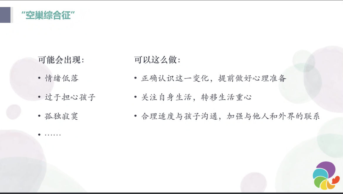 第一,理解自己。随着孩子离家求学,家长或许会出现“空巢综合征”,感觉情绪低落、孤独寂寞。面对这些状况,孙浩令建议家长正确认识这一变化,做好心理建设、关注自身,转移注意力、适度沟通,加强与外界的联系。