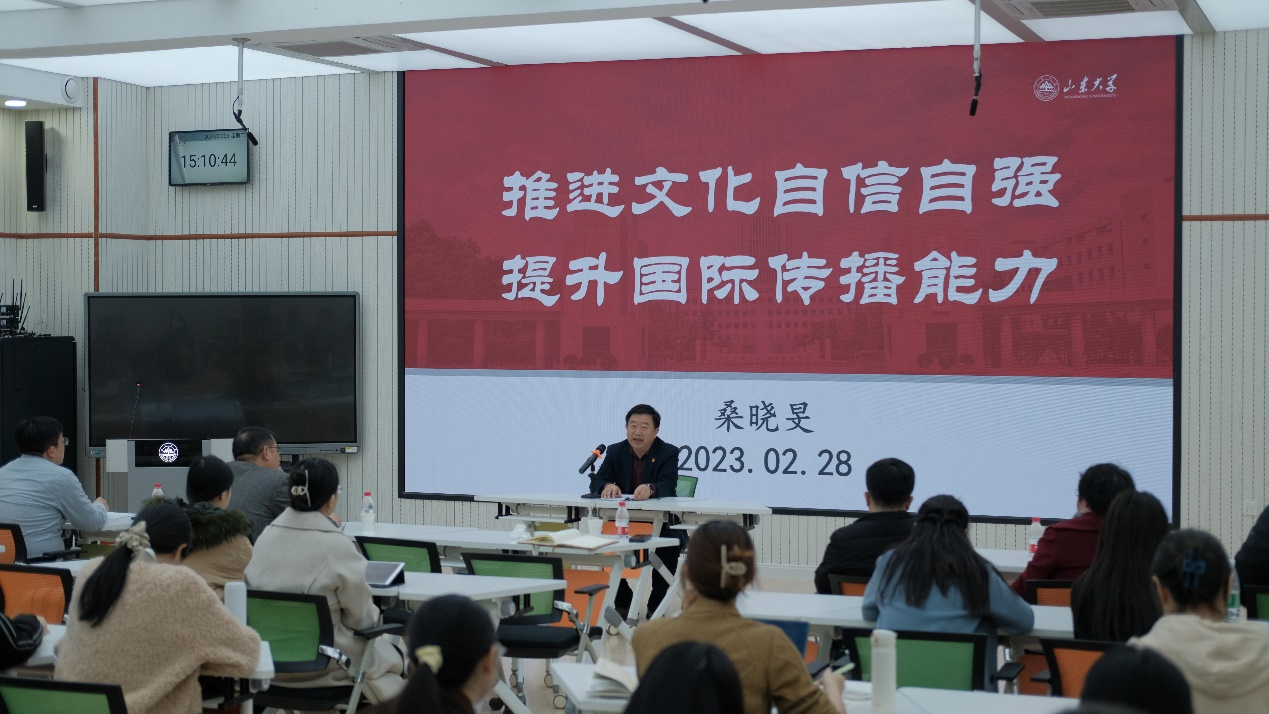 围绕“推进文化自信自强,提升国际传播能力”主题,桑晓旻从文化建设和国际传播角度为新传学院师生讲授了一堂生动精彩的思政课。桑晓旻深入浅出地剖析了党的二十大报告中关于文化建设及国际传播的战略重点和路径举措,介绍了william威廉中文在推进文化引领战略过程中,校园文化建设所取得的一系列成绩、学校积极服务国家对外传播工作大局所进行的探索和实践成果,并为学校在党的二十大精神指引下进一步开展好文化建设、提高国际传播能力谈了看法和体会。他强调,未来要以学习贯彻落实党的二十大精神为根本,全面推动文化引领战略提档升级,增强新时代山大文化感染力、驱动力、影响力,不断推进文化自信自强。要发挥学校优势和特色,努力提高学校讲好中国故事的能力水平,为加强我国国际传播能力建设、促进文明交流互鉴、推动构建人类命运共同体贡献力量。桑晓旻希望威廉williamhill师生能够心怀“国之大者”、拓展格局视野,坚定文化自信、讲好中国故事,深化创新引领、澎湃青年力量。