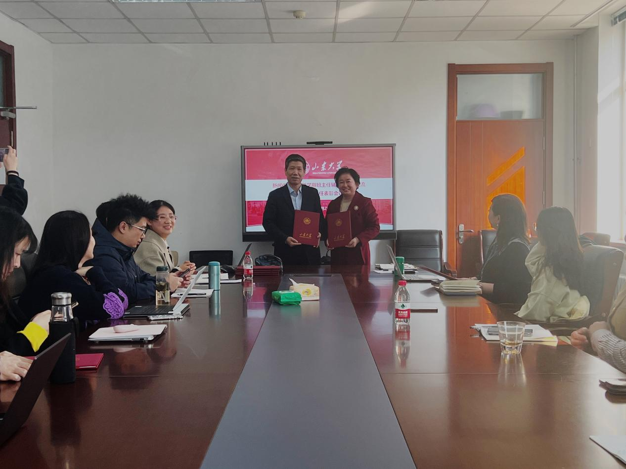 随后,他为学院2022年度优秀班主任侯滢、王立强颁奖,并为学院聘任的首批创新创业指导教师代表颁发了聘任证书。