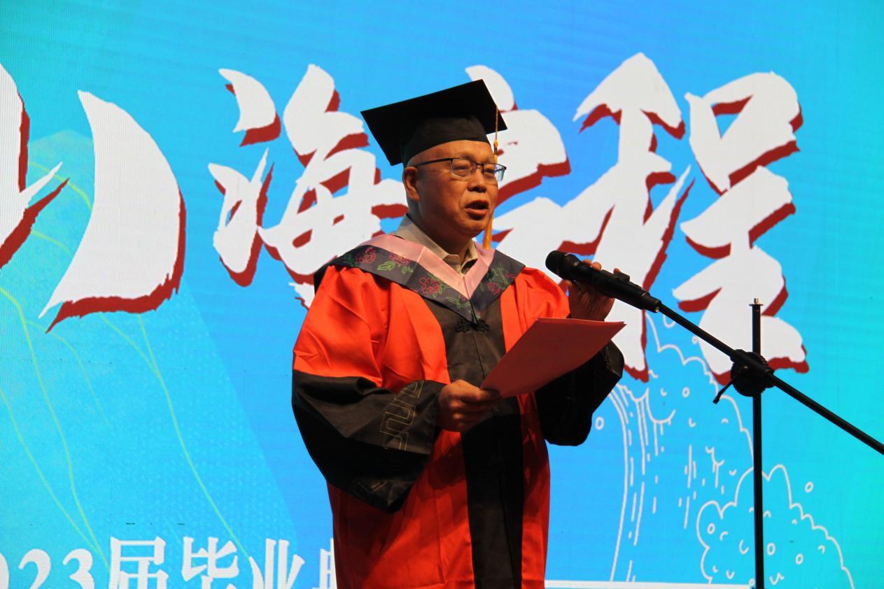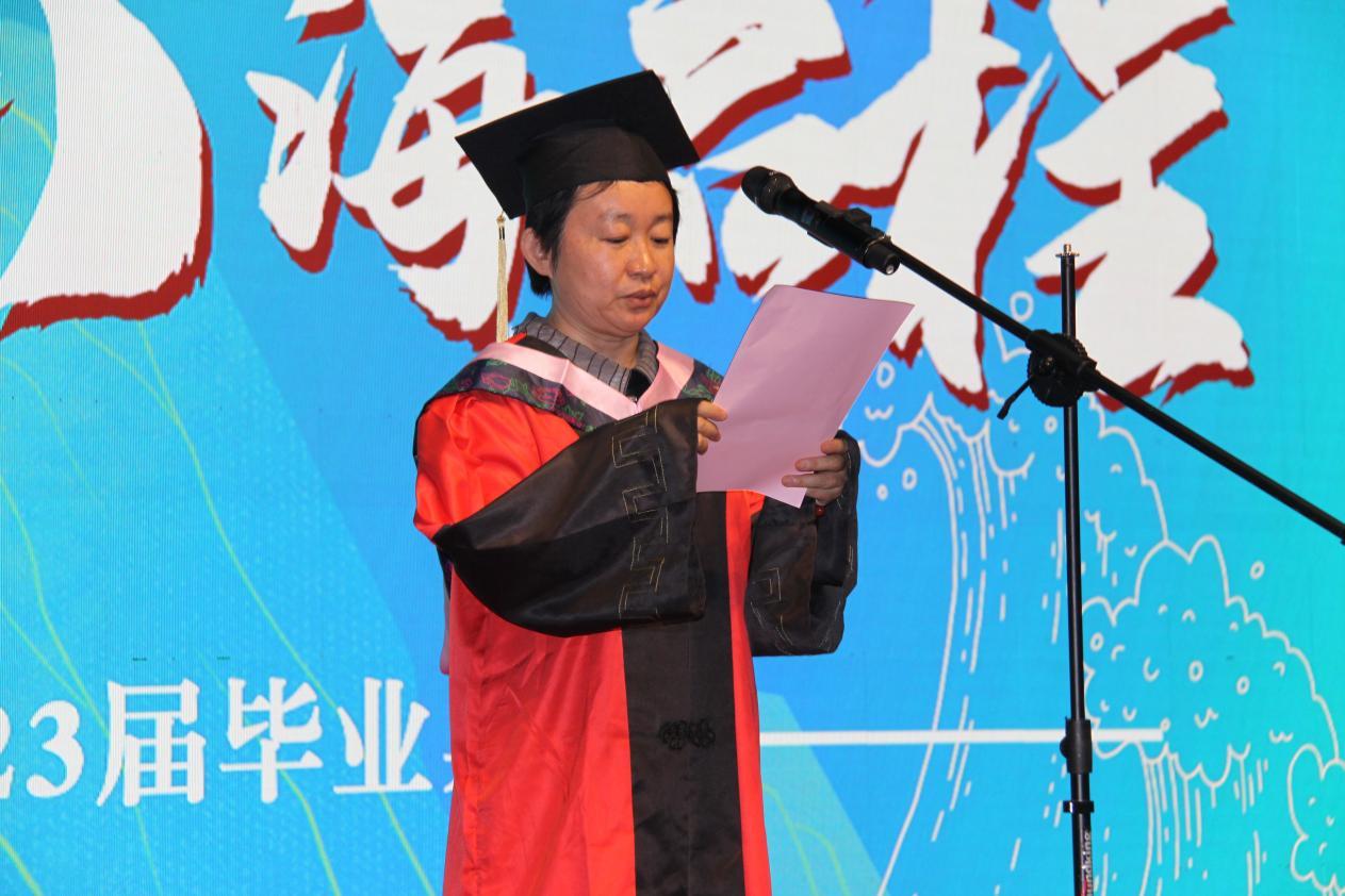 奏唱国歌环节结束后,副院长邱凌宣读本科生和研究生《表彰优秀毕业生决定》,公布省级和校级优秀毕业生名单。