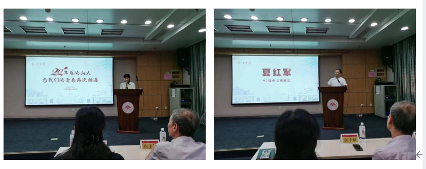 会议伊始,97级中文班班长夏红军致欢迎辞。他深情回忆了在山大文院的青春岁月,并表示无论身份如何改变、角色如何变化,同学之间难以忘怀和割舍不断的同窗感情不会改变。他呼吁各位同学以后仍加强联系,始终心系母校,牢记“四年山大人,一生山大情”。