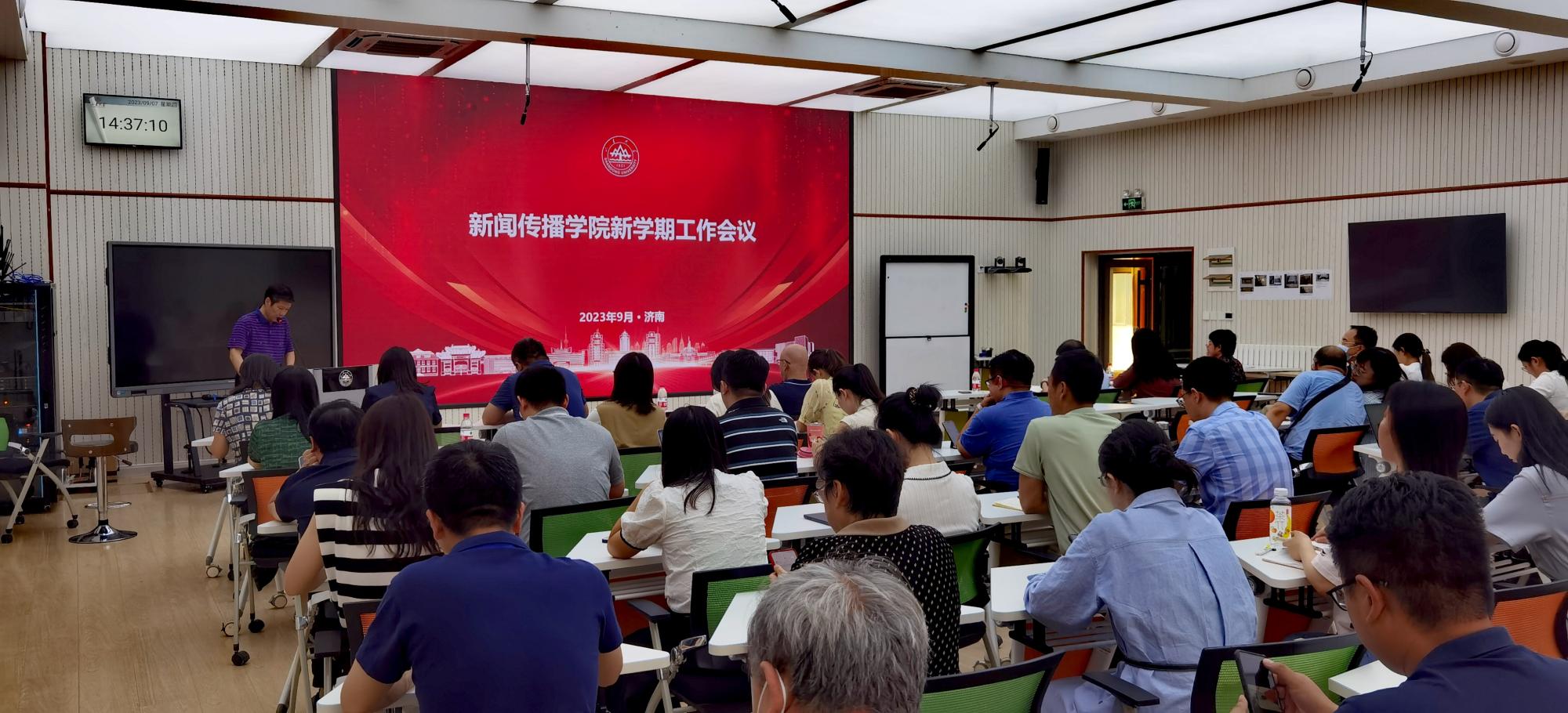 随后,刘明洋院长以“全面推进学院高质量发展”为主题,部署介绍了学院2023年秋季学期总体工作思路和工作重点。以高质量党建引领学院高质量发展;做好“部校共建”第二期工作,推进马克思主义新闻传播人才培养的系统化;高质量推进学院发展模式创新,探索与产业深度融合的方式和路径,以高端智库建设推进学科创新;推进人才队伍建设,加大才引进力度,加强人才团队培育;高质量做好人才培养工作,推进新增本科专业建设,高质量完成国家本科评估工作,推进研究生科研贡献度;加强科研团队、平台建设,推进学术交流活动,完善科研管理和激励政策;推进山东省学科“共生计划”,推进校地合作、校企合作、校媒合作,服务国家战略和地方发展;高质量做好学生工作、广播电视台工作和学院发展的支撑保障工作。