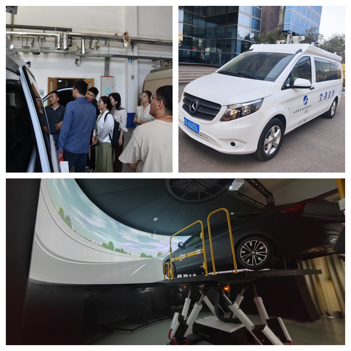 路域安全与应急保障行业重点实验室张昱主任介绍了实验室建设、科技创新以及技术服务等相关工作,并依次介绍自然驾驶实验系统以及路域环境模拟实验系统等大型仪器设备情况。我院教职工重点参观并轮流体验了实验室拟建的未来媒体场景——智能网联模拟驾驶集群环境。详细了解各个设备的模块组成、配置参数、场地要求,以及潜在交叉研究方向、应用场景和运维模式。在智慧城市和智能交通赋能的大背景下,城市传播场景发生变化,特别是作为大型移动终端的智能网联汽车在深度媒介化时代将发挥重要作用。老师们与省交科院安全团队就未来媒体场景中潜在研究方向、设备性能参数、实验平台建设经验等充分交流讨论。