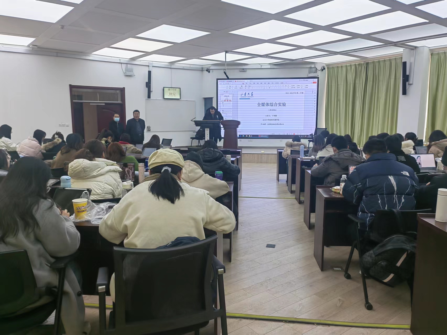 本学期研究生课程开设20余门,近60人(次)教师进行授课。学院高度重视研究生教学工作,认真落实学校和学院的各项工作要求,积极部署新学期课程教学和教务管理工作。开学一周,教学运行状况良好,保障充分。任课教师按时到达课堂,认真上好新学期第一堂课,教室设备使用正常,教学秩序井然,为新学期营造了一个良好的开端。教学上,教师教学计划清晰明了,内容上注重提升学生专业能力,同时贯彻课程思政的教育理念,实现价值引领,展现了较高的教学热情和学术素养;研究生到课率高,课堂秩序良好,学生们积极参与到课堂教学中,热情饱满,展现了良好的精神风貌。课后学院领导和教学督导组与师生进行深入交流与沟通,分享了课程教学的有效策略,探讨了如何提高学习的获得感,提升教学的满意度。同时也向教师们表示感谢和鼓励,希望学院教师大力弘扬教育家精神,发挥优秀教师和优质课堂的模范引领作用,以实干实效加快学院人才培养的高质量发展。