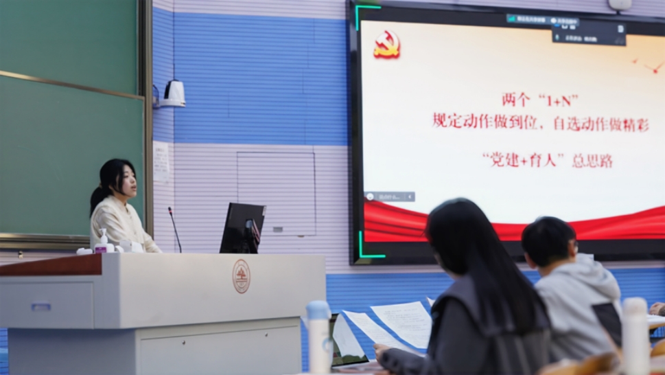 在学生组织骨干的经验分享环节,各组织代表对过去半年开展的工作进行了汇报,同时分享了未来工作规划。本科生党支部副书记宋宵佳介绍了本科生党支部的主要工作。在过去的一年内,党支部坚持把“规定动作”做到位,“自选动作”做精彩,获评五星级党支部。在新的一年里,党支部将继续推进党团班一体化,做好党员发展、教育、管理工作,细化支部考评,运用新媒体党建矩阵模式扩大宣传影响力,继续做好“红色经典诵写讲”“新问心答”“‘新心向荣’小农场”“‘新心向阳’心理辅导站”等特色活动,持续优化原创视频栏目“新视界”、开辟“新知先锋”党员服务品牌,与学院各组织部门加强协作,充分发挥党支部的战斗堡垒和党员的先锋模范作用,推动“党建+育人”工作纵深开展。