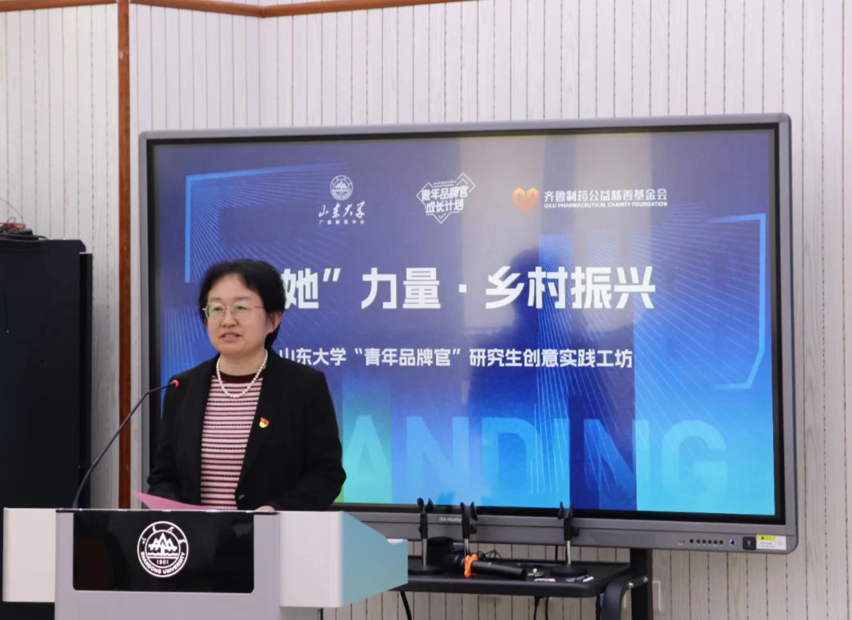 活动伊始,王丽君首先代表学院对支持活动开展的各单位表示感谢,她在致辞中表示,本次活动以品牌赋能产业高质量发展,给打造乡村振兴齐鲁样板贡献品牌力量,对于学生而言是一次宝贵的实践机会,于学院而言也是校企联手打造乡村振兴样板的优秀案例,未来希望能够继续同齐鲁制药等优秀企业携手同行,共创人才、品牌共育双赢的崭新格局。