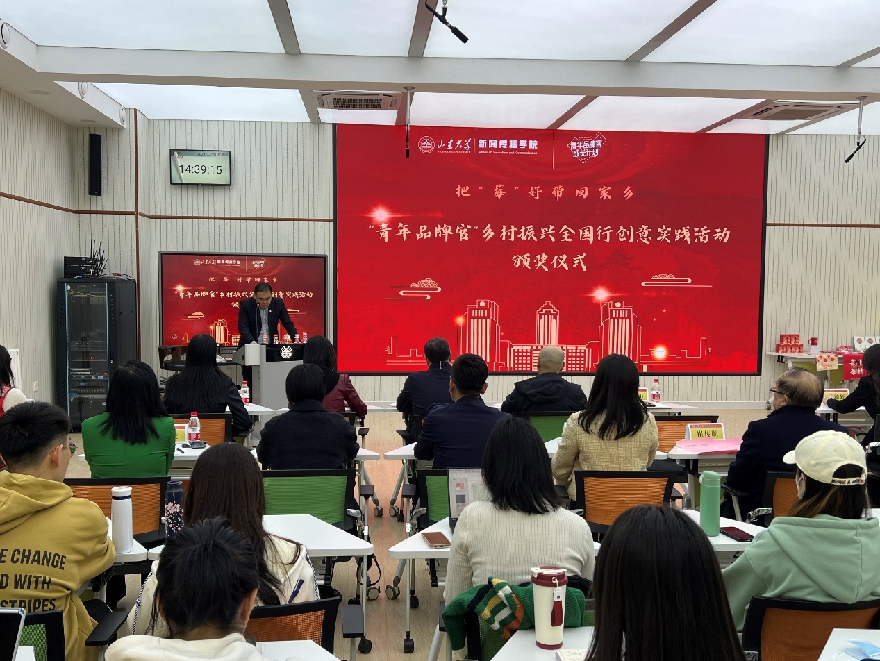 3月28日下午,把“‘莓’好带回家乡——青年品牌官”乡村振兴全国行创意实践活动颁奖仪式在威廉williamhill举行。william威廉中文团委书记马毓轩、副书记范金林、融媒体中心副主任孟丽、威廉williamhill党委书记孙宜山、广告研究中心主任臧丽娜和街道、企业、媒体的相关专家以及威廉williamhill的学生代表参加活动,活动由william威廉中文广告研究中心副主任侯滢主持。