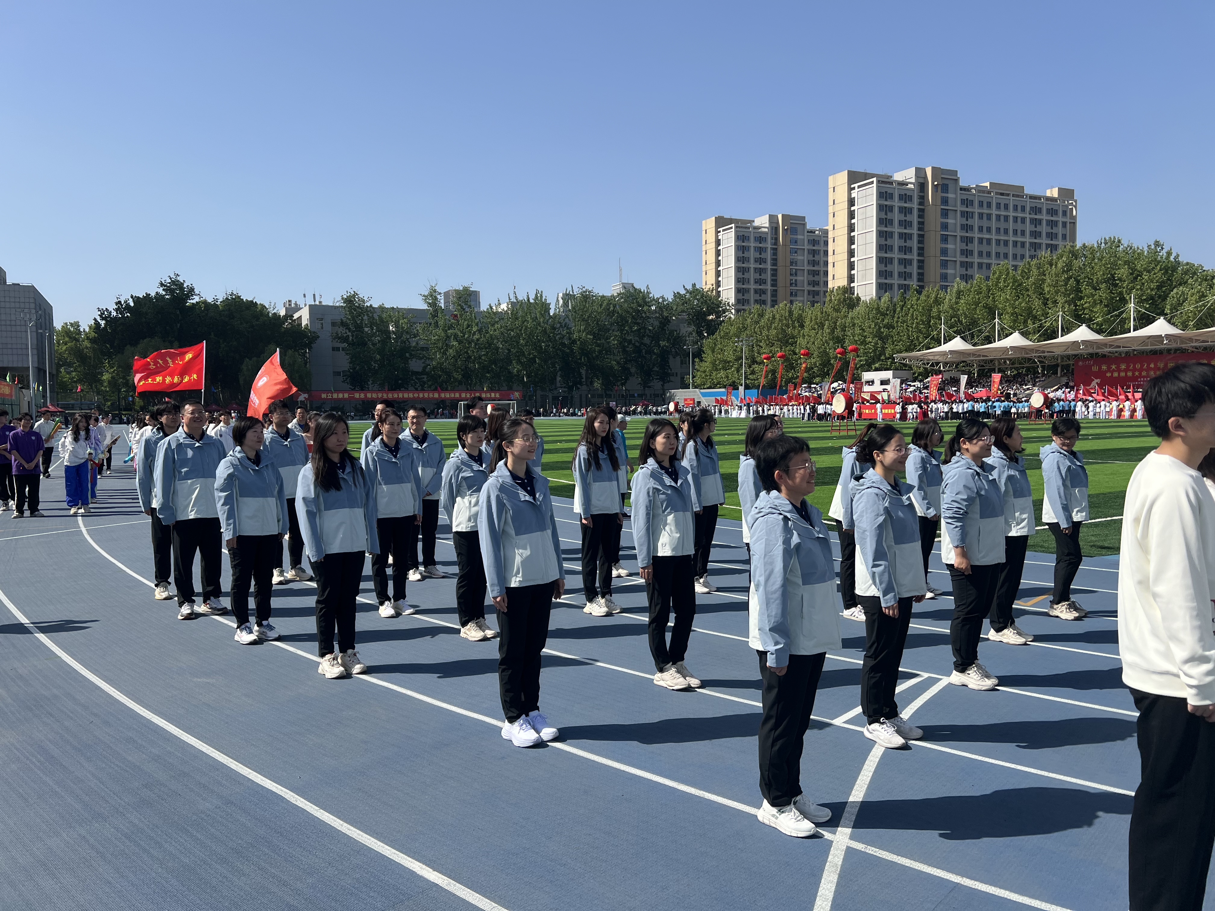 在开幕式中,学院党委书记孙宜山、副院长倪万(主持行政工作)带领60余名师生代表,组成学院入场式方阵,用“青春相伴、薪火相传”的嘹亮口号,展现学院风采,激励运动员奋勇拼搏!