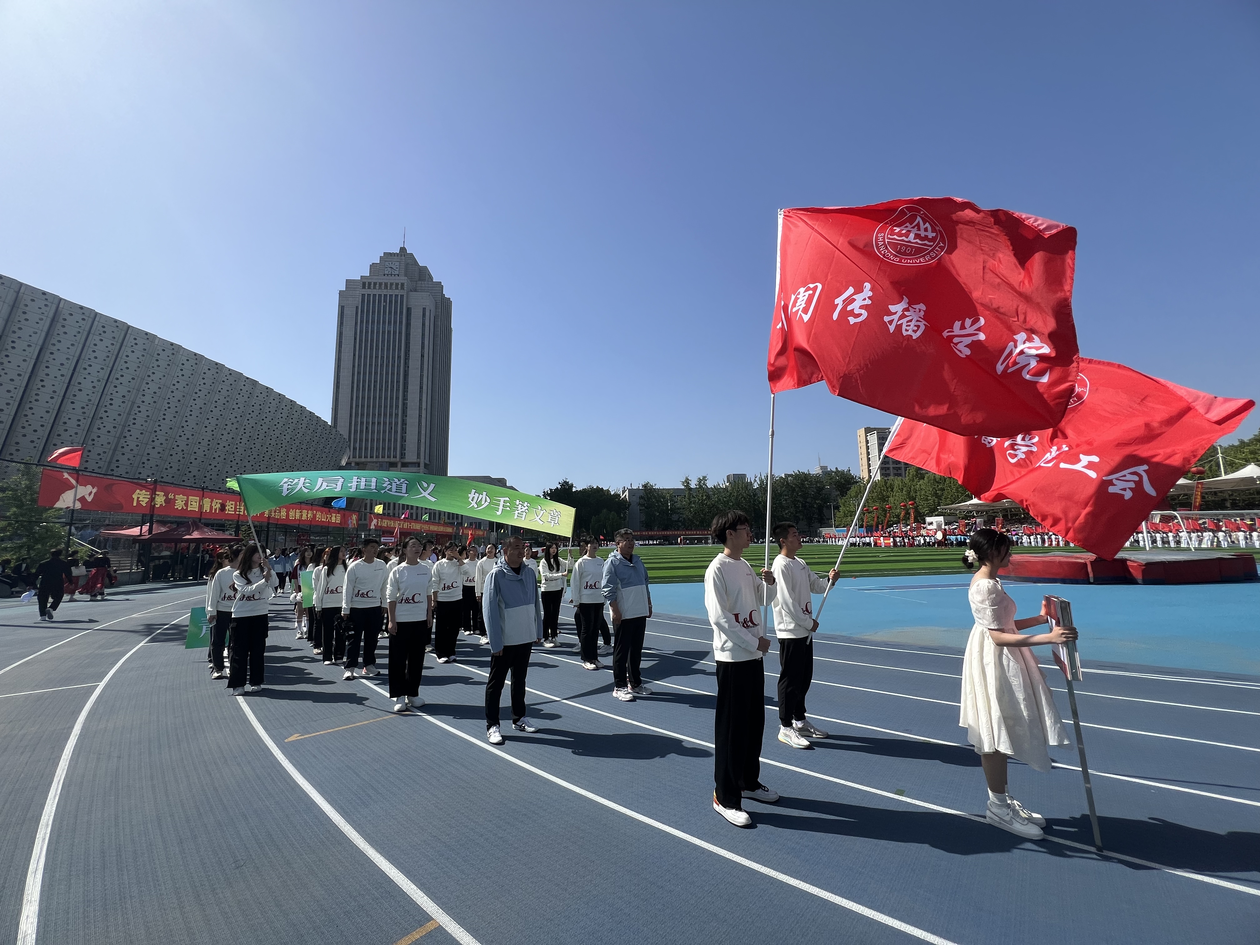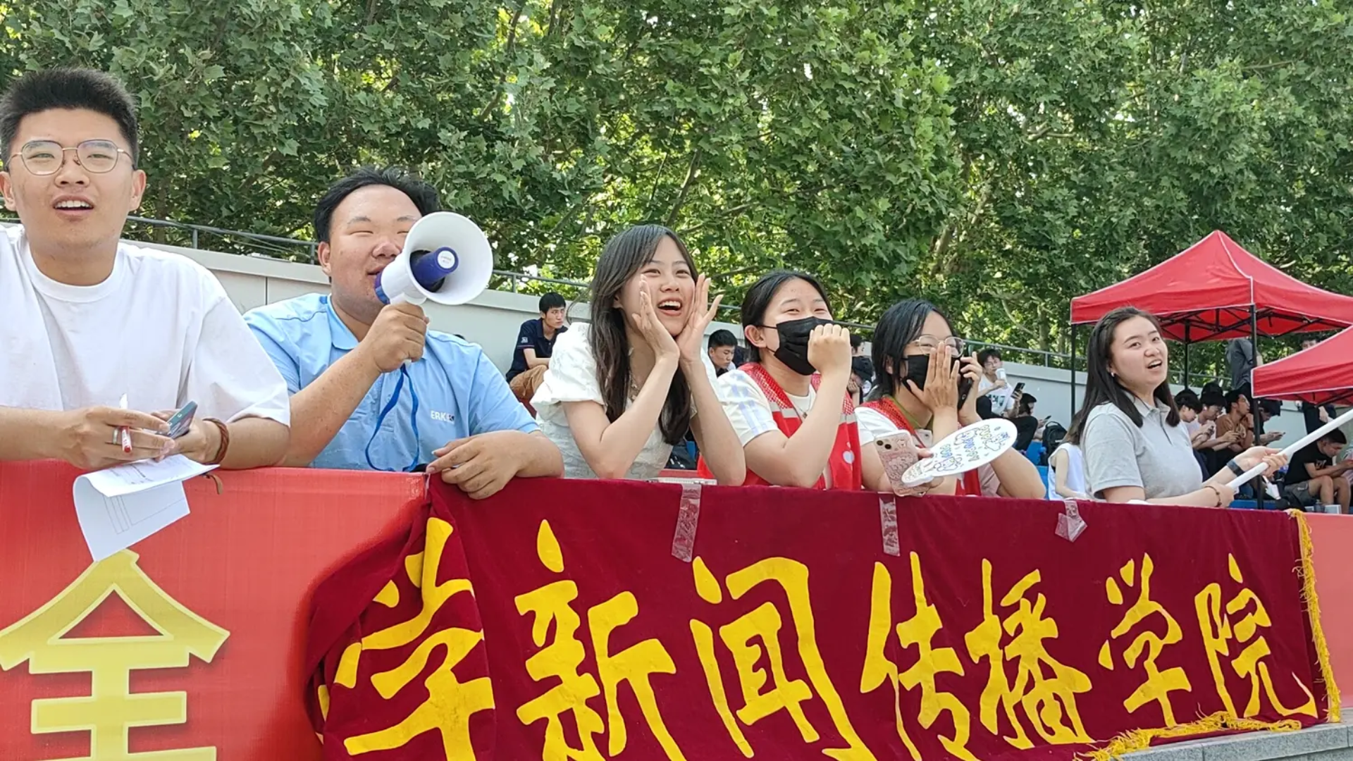 本次运动会斩获佳绩,离不开学院运动员们的拼搏奋斗,也离不开全院师生的共同努力。学生会体育部多次召开筹备会议,精心组织学院方阵排练和运动员选拔工作,在赛前帮助运动员们进行了科学的训练和指导,协助选手们调整状态、提升水平;比赛期间,学院领导带领辅导员队伍全程跟进,为运动员保驾护航,学生会体育部骨干和青年志愿者“第一个来、最后一个走”,做好运动员引导、物资发放、终点迎接等后勤保障工作,让运动员放心踏上赛场;宣传组高度重视赛事新闻工作,将新闻工作台搭在场地上,学生会学术科创部和媒体宣传中心的记者们奔跑在赛场中,第一时间进行资讯播报工作。在新传全体师生的支持下,学院开幕式方阵表现亮眼,观众座区组织井然有序,全院共投递宣传广播稿件400余篇,保持较高用稿率,最终获评体育道德风尚奖。