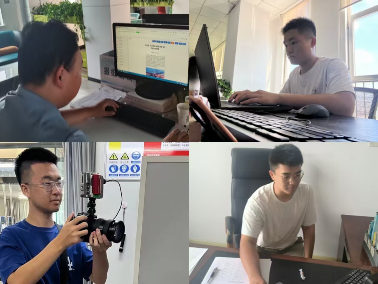 在实习实践中,队员将理论知识与实际操作相结合,在上手实操中学习专业技能、深化专业素养。作为实习记者,队员尹天佑在沂南县融媒体中心发挥专业优势,参与了新闻报道、客户端运维等多项工作;队员王帅在五莲县融媒体中心实习期间,参与了视频节目的拍摄与制作,参与制作的视频被新华社等央媒转载报道;队员王钟毓在荣成自媒体联盟实习期间,参与了视频的拍摄、剪辑和稿件的采写等工作;队员刘新宇在清泉特钢实习期间,通过日常工作提升文字撰写水平和办公技能,为未来的学习、工作打下了坚实基础。
