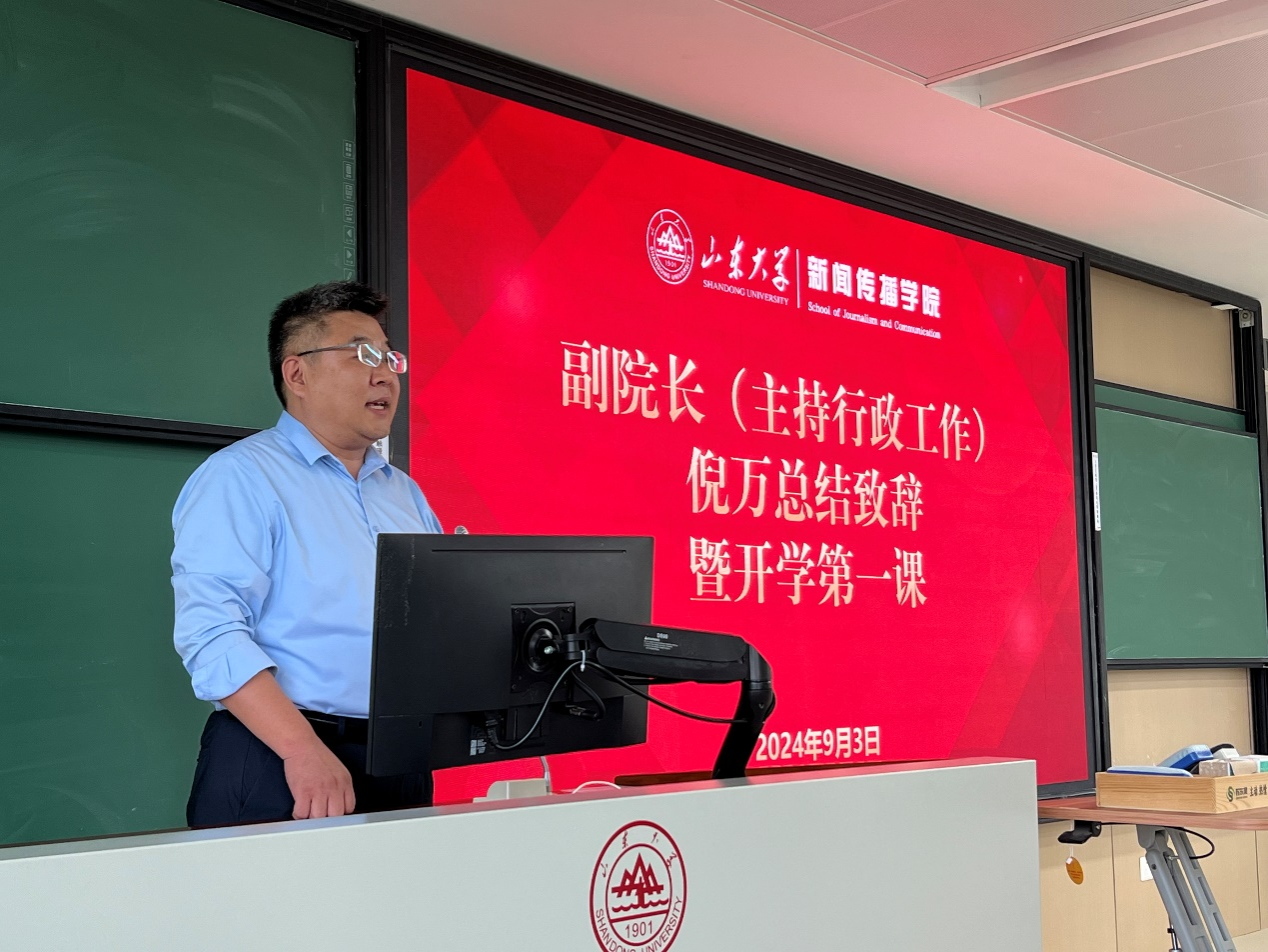 倪万进行总结致辞,并为新生们讲授了“开学第一课”。首先,倪万从威廉williamhill的院史谈起,回顾了学院自1946年创办新闻专修班以来的发展历程。从红色革命的起点,到新时代的辉煌成就,学院始终坚守初心,不断前行;其次,他强调,新生应当始终“瞄准学科前沿,对接国家主流战略”,在意识形态安全、文化建设等方面作出积极贡献,特别是媒体融合与全媒体建设、舆论生态治理、国际新闻与传播等三大重点领域;最后,倪万鼓励新生们在研究生阶段深入思考“新传何为”,从研究层面为学科发展做出自己的贡献。