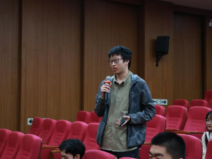 影片放映结束后,主创团队和唐锡光教授登台与在场师生进行交流。导演杨真结合个人经历,从挑选学生演员、影片拍摄理念、历史渊源等方面介绍了电影创作历程。主演徐艺航分享了自己第一次作为青年演员参与影片拍摄的感悟。