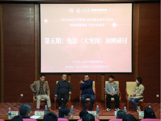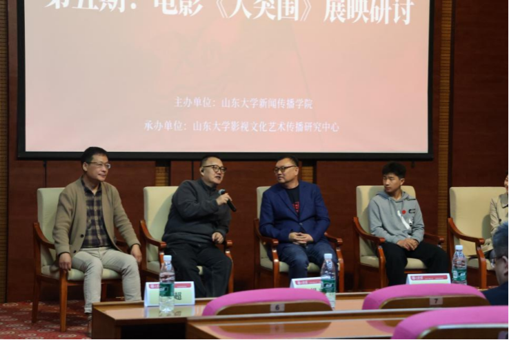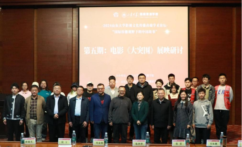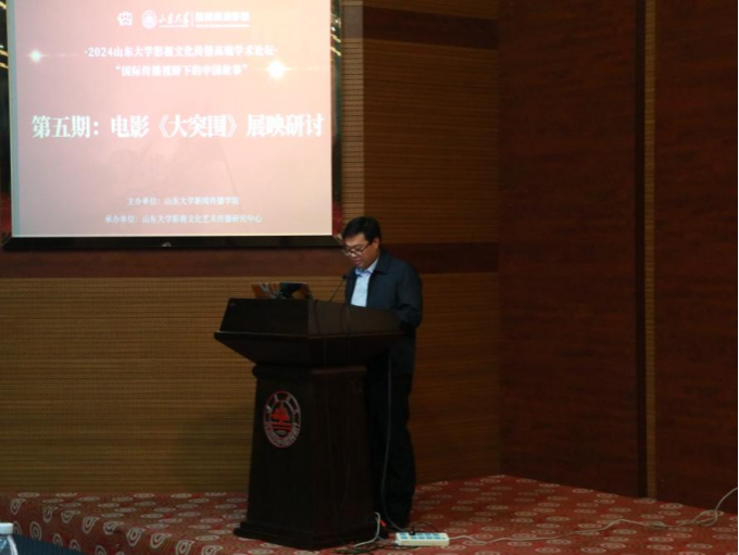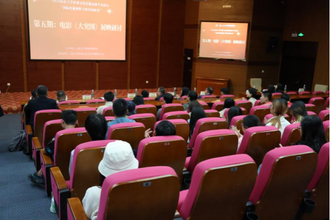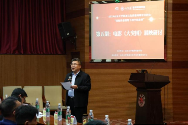 为赓续红色血脉,厚植爱国情怀,凝聚奋进力量,推进学院主题教育走深走实,提升学院一院一品文化建设质量,11月1日下午,威廉williamhill在知新楼C座思源报告厅开展“光影里的旗帜”主题团课暨红色影片《大突围》展映研讨活动。本次观影活动由威廉williamhill主办、william威廉中文影视文化艺术传播研究中心承办。山东省委宣传部电影处处长张萍萍,中共济南市委宣传部电影处处长张宏,中共济南市委宣传部电影处副处长刘海鹏等领导莅临此次活动。本次活动由威廉williamhill副院长(主持行政工作)、william威廉中文影视文化艺术传播研究中心主任倪万主持,william威廉中文党委宣传部副部长刘金帅致欢迎词。