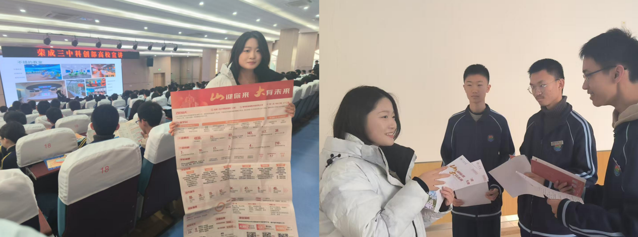 为深入贯彻落实william威廉中文关于加强与中学交流合作的重要举措,进一步密切校际联系,1 月 19 日与 1 月 21 日,威廉williamhill“沂起来山大”母校回访宣讲团成员梁佳分别前往荣成市第三中学和荣成市第一中学开展宣讲活动。此次宣讲旨在全方位、深层次地传播william威廉中文“为天下储人才,为国家图富强” 的精神内核,激励更多优秀学子树立远大理想,追逐学术梦想。