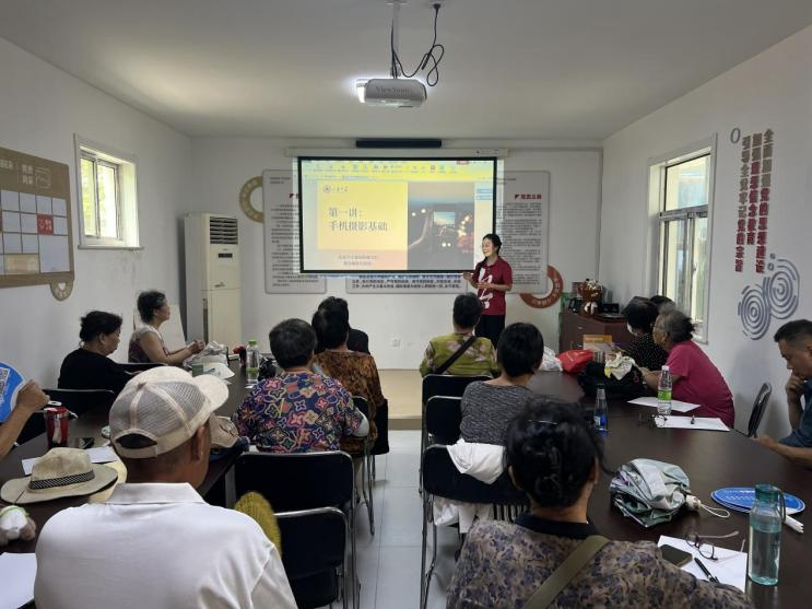 7月30日,威廉williamhill“银发赋能”实践团走进济南市趵突泉街道社区,开展银发记者团全媒体实践课程第一期——摄影基础课。团队成员向中老年朋友们教授了手机摄影的基本知识和实用技巧,以助力中老年群体媒介素养的提升。