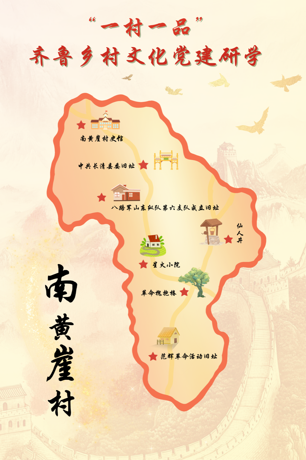 实践过程中,“一村一品”齐鲁红色乡村实践团队充分发挥新闻传播专业的优势,串联当地红色景点与生态项目,为南黄崖村设计了专题文旅地图。