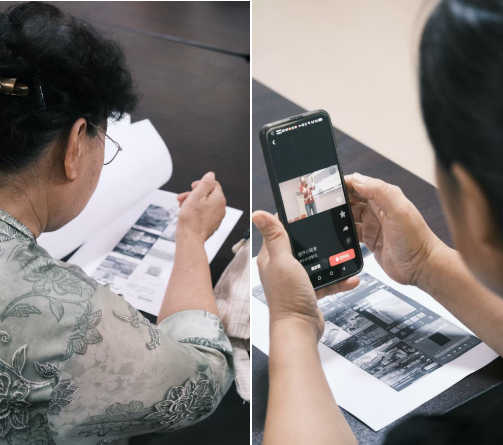 理论教学结束后,老人们进入到实践操作环节。他们尝试剪辑自己的旅行片段或家庭聚会视频,将所学转化为具体成果。实践团成员们分散在老人身边,化身“一对一”教师,随时解答老人们的操作困惑,手把手指导关键步骤。现场学习氛围浓厚,老人们专注的神情和成功完成剪辑片段时的笑容,成为课堂最动人的风景。张爷爷在团队的帮助下,首次为自己拍摄的泉水视频加上了文字说明和悠扬配乐,他满意地表示:“这下发到家庭群和朋友圈里,让大家都看看。”