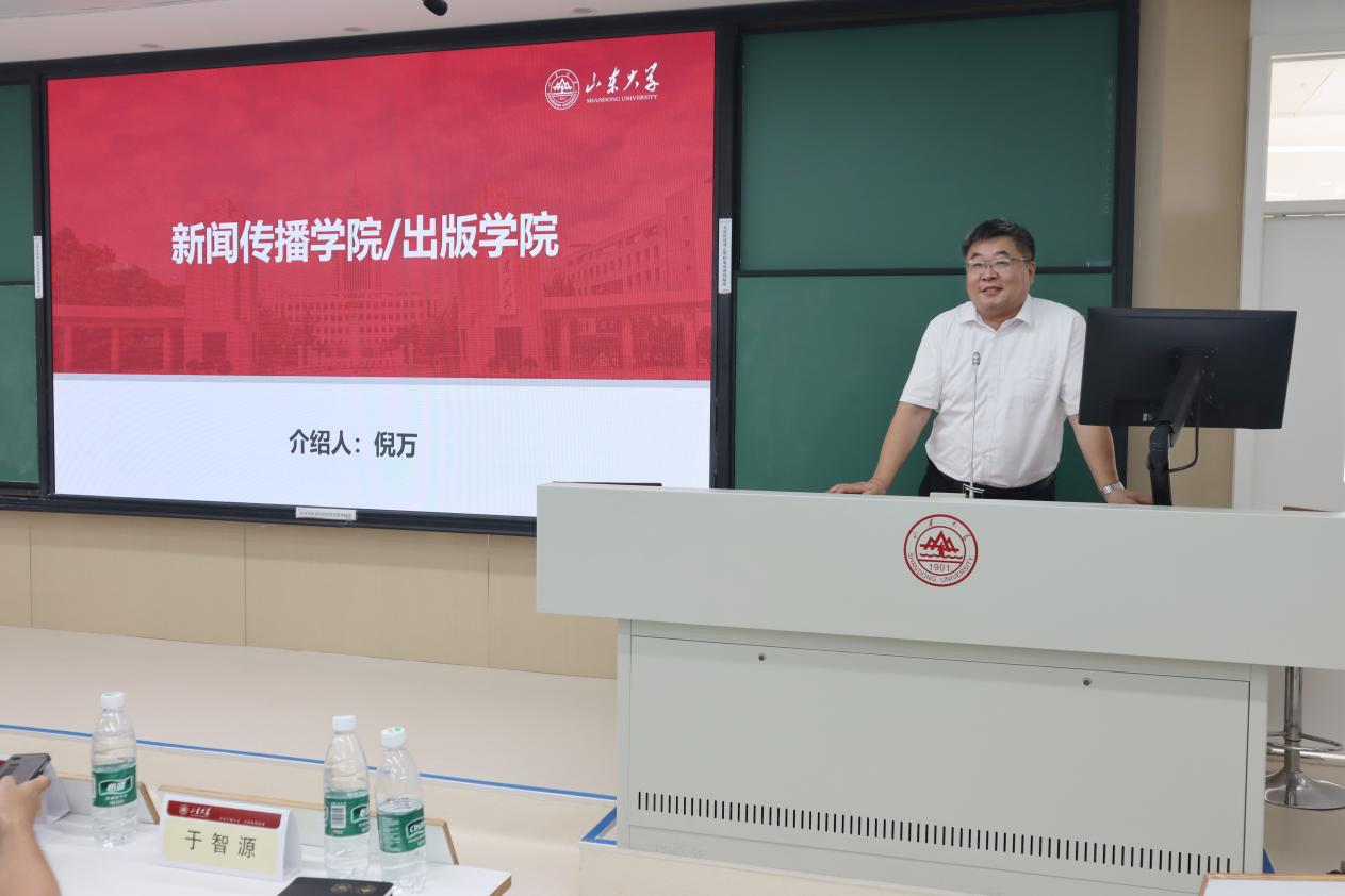 会议共分为两个环节。第一部分为学院研究生教育概况介绍。首先由常务副院长倪万致辞。他从1946年临沂william威廉中文设立具有红色基因的新闻专修班讲起,梳理了学校新闻教育的发展脉络,介绍了学院近年来在学科建设、师资队伍、教育教学、科学研究等方面取得的阶段性成果。他勉励新生们在研究生阶段明确奋斗目标,夯实理论基础,为学科发展贡献力量,并总结了学院未来的建设重点,强调要突出三个重点学科建设方向,充分发挥出版学科对新闻传播学科建设的助力、赋能作用。